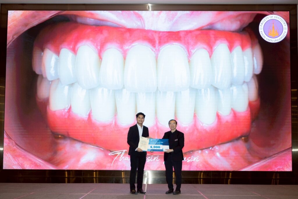คณะทันตแพทยศาสตร์ มหาวิทยาลัยขอนแก่น ขอแสดงความยินดีกับ ทันตแพทย์ธรรมศิริ นามศิริ นักศึกษาหลักสูตรวุฒิบัตร สาขาทันตกรรมประดิษฐ์ ได้รับ รางวัลรองชนะเลิศอันดับ 1 ในการประกวด Esthetic Ceramic Case Competition ในหมวด “ZR Supra Lucent Competition” โดยมีอาจารย์ที่ปรึกษาคือ ศ.ดร.ทพ.นิวัตร จันทร์เทวี รศ.ดร.ทพ.ดาราพร แซ่ลี้ และอ.ทพ.กิรวุฒิ เหลืองตระกูล ภายในงานประชุมวิชาการประจำปี สมาคมทันตแพทย์เอกชนแห่งประเทศไทย ภายใต้หัวข้อ “Level Up Your Practice Part II” ซึ่งจัดขึ้นระหว่างวันที่ 29–30 ตุลาคม 2568 ณ โรงแรมอีสติน แกรนด์ โดยได้รับการสนับสนุนจาก Shofu และ Accord Henry Schein