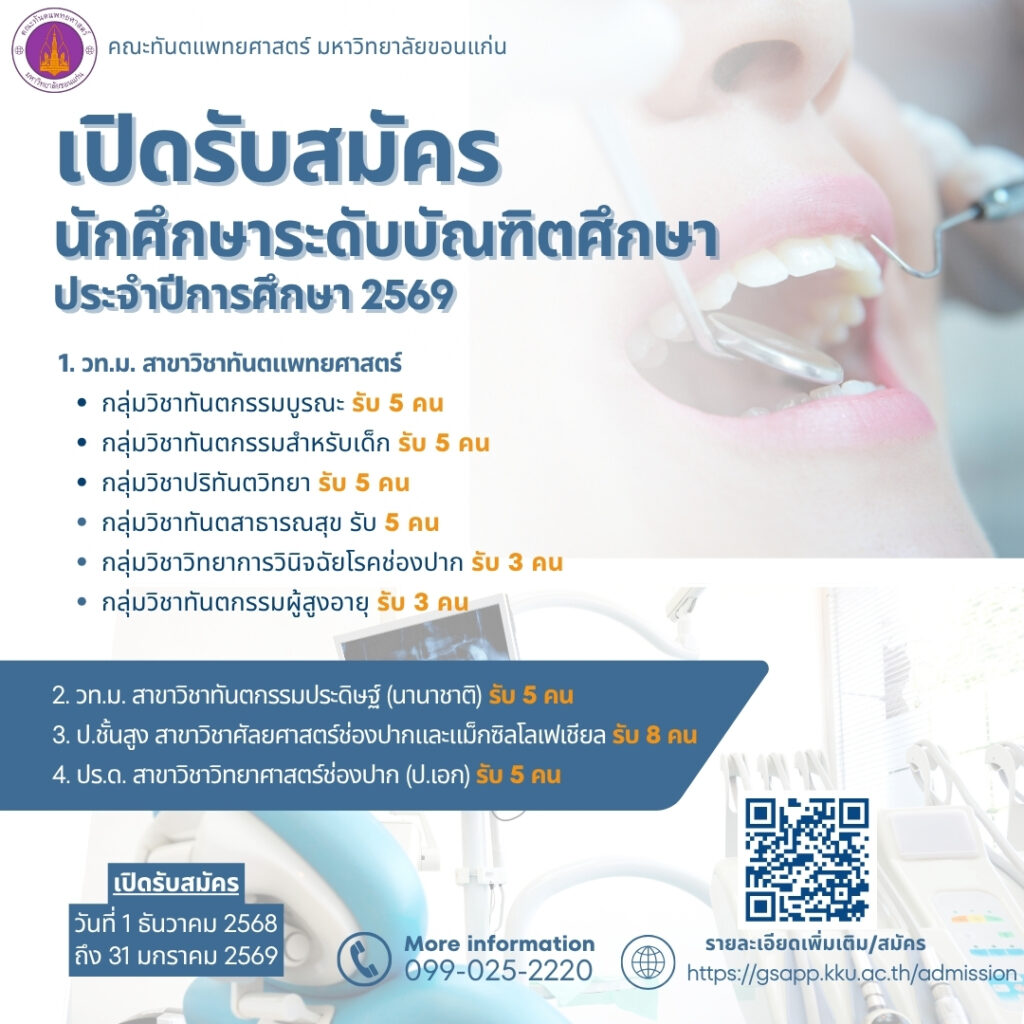เปิดรับสมัครนักศึกษา ป.โท/ป.เอก ปี 69 5 พ.ย. 25685 พ.ย. 2025 yingpo ข่าวประชาสัมพันธ์, ปริญญาตรี 📢 คณะทันตแพทยศาสตร์ มหาวิทยาลัยขอนแก่น : เปิดรับสมัครนักศึกษา ป.โท/ป.เอก ปี 69 ✅📅 เปิดรับสมัคร : 1 ธันวาคม 68 – 31 มกราคม 69 ⏰🔗 รายละเอียด/สมัครออนไลน์: https://gsapp.kku.ac.th/admission🔥อย่าพลาด! เริ่มต้นเส้นทางผู้เชี่ยวชาญกับเรา🔥 Grad2569 #ทันตแพทยศาสตร์ #เรียนต่อ #มหาวิทยาลัย FacebookFacebookXTwitterLINELine