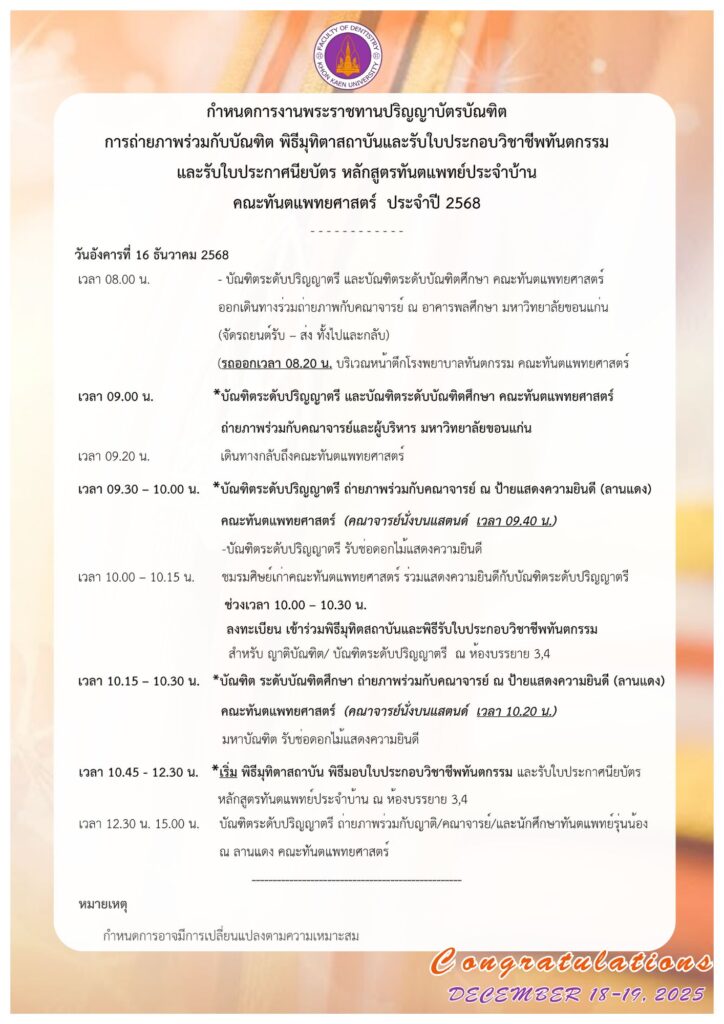 พิธีมุทิตาสถาบัน คณะทันตแพทยศาสตร์ มหาวิทยาลัยขอนแก่น
