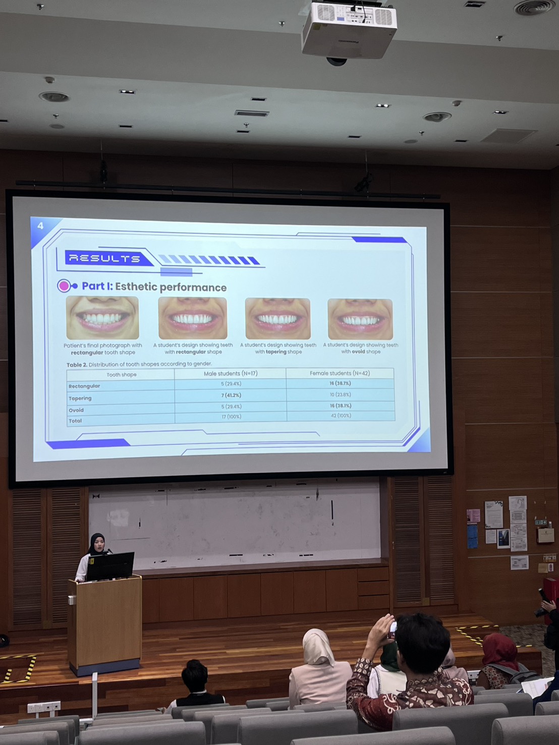 ผลงานวิจัยที่ได้รับรางวัลมีชื่อว่า “Self-Directed Learning Outcomes Using AI-Assisted Digital Smile Design among Final-Year Dental Students” เป็นการศึกษาการประยุกต์ใช้ปัญญาประดิษฐ์ (Artificial Intelligence: AI) ร่วมกับเทคโนโลยี Digital Smile Design เพื่อส่งเสริมผลลัพธ์การเรียนรู้ด้วยตนเองของนักศึกษาทันตแพทย์ชั้นปีสุดท้าย สะท้อนให้เห็นถึงศักยภาพของนักศึกษาไทยในการบูรณาการเทคโนโลยีดิจิทัลกับการศึกษาทางการแพทย์ได้อย่างมีประสิทธิภาพและทัดเทียมระดับสากล