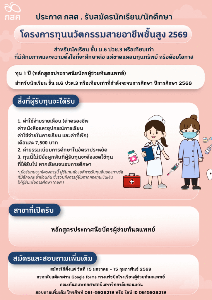 ประกาศรับสมัคร “นักเรียนผู้ช่วยทันตแพทย์” คณะทันตแพทยศาสตร์ มหาวิทยาลัยขอนแก่น
