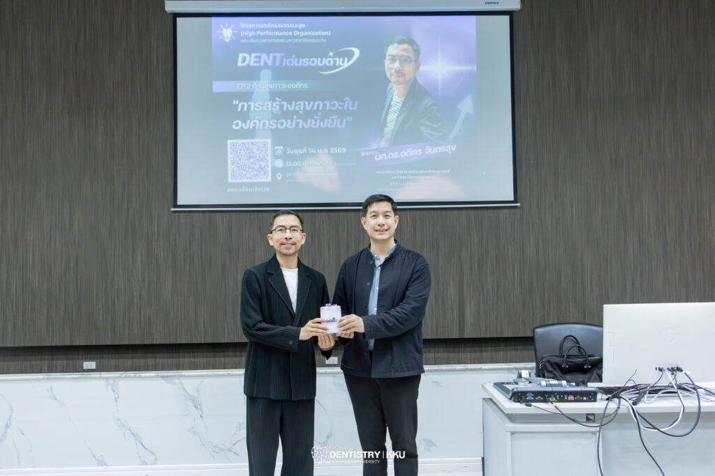 ทั้งนี้ กิจกรรมดังกล่าวเป็นการจัดต่อเนื่องจากครั้งที่ผ่านมา เมื่อวันที่ 26 พฤศจิกายน 2568 ซึ่งจัดเป็น EP.1 ด้านสื่อสารองค์กรและนวัตกรรม ในหัวข้อ “กลยุทธ์การสื่อสารและนวัตกรรม เพื่อขับเคลื่อนความสำเร็จขององค์กร” โดยคุณพงศ์พสุ อุณาพรหม รองกรรมการผู้จัดการ และประธานเจ้าหน้าที่เพื่อการเติบโตองค์กร บริษัท กิฟฟารีน สกายไลน์ ยูนิตี้ จำกัด รวมถึงที่ปรึกษาด้านสื่อสารองค์กรและนวัตกรรมของคณะทันตแพทยศาสตร์ ครั้งนี้นับเป็น EP.2 ด้านสุขภาวะองค์กร ที่มุ่งเน้นการเสริมสร้างความเข้าใจเรื่องสุขภาวะในมิติต่าง ๆ อันเป็นรากฐานสำคัญของการพัฒนาองค์กรอย่างมีประสิทธิภาพ