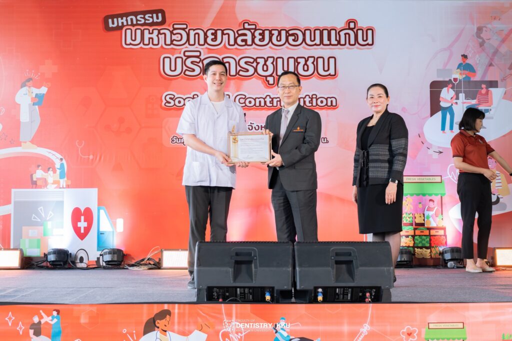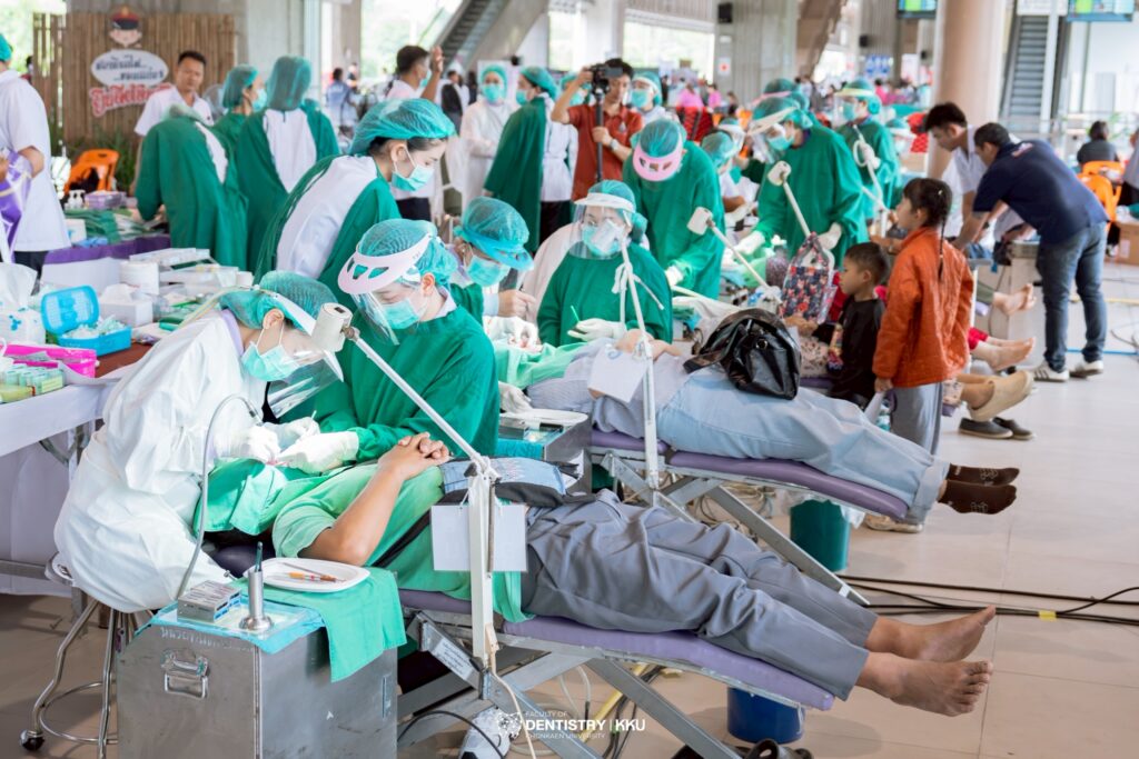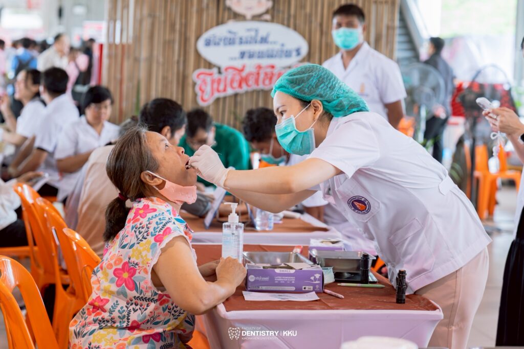 คณะทันตแพทยศาสตร์ มหาวิทยาลัยขอนแก่น ร่วมกิจกรรม “มหกรรมมหาวิทยาลัยขอนแก่นบริการชุมชน (Societal Contribution)” จัดหน่วยทันตกรรมพระราชในพระบาทสมเด็จพระเจ้าอยู่หัว ออกให้บริการทันตกรรมเคลื่อนที่ ตรวจสุขภาพช่องปากและให้คำแนะนำด้านทันตกรรมแก่ประชาชนโดยไม่เสียค่าใช้จ่าย เพื่อส่งเสริมการดูแลสุขภาพช่องปากและเสริมสร้างรอยยิ้มที่แข็งแรงให้กับคนในชุมชน กิจกรรมจัดขึ้นเมื่อวันศุกร์ที่ 6 มีนาคม 2569 ณ สถานีรถไฟขอนแก่น จังหวัดขอนแก่น