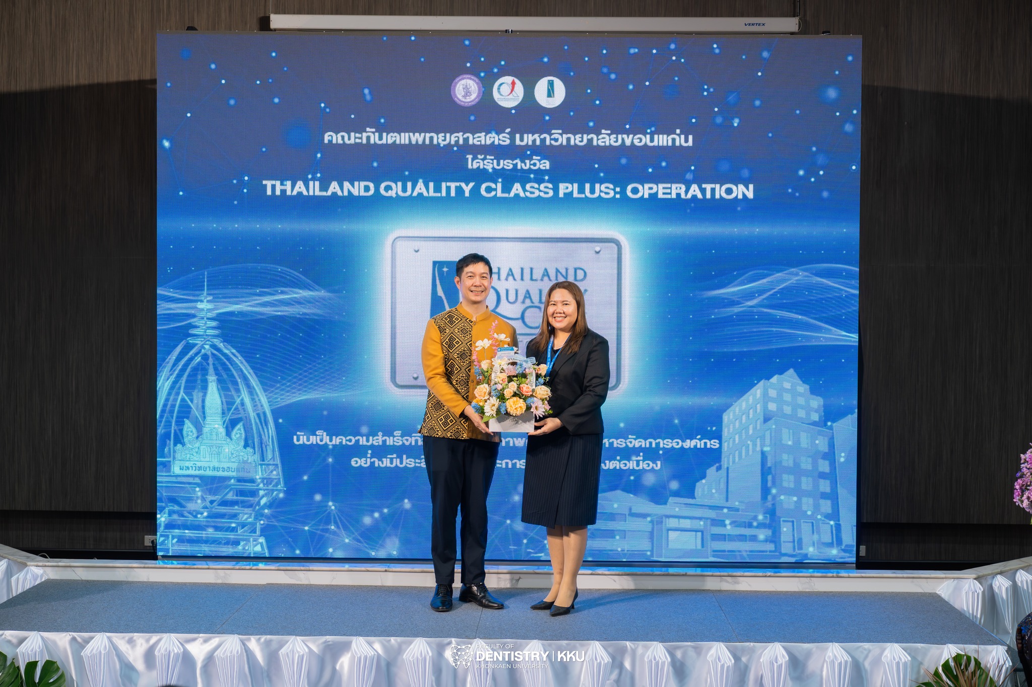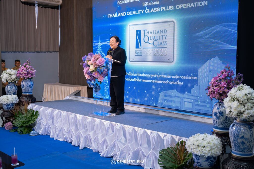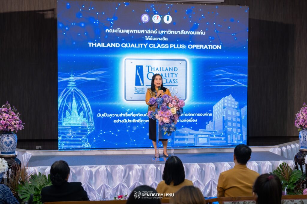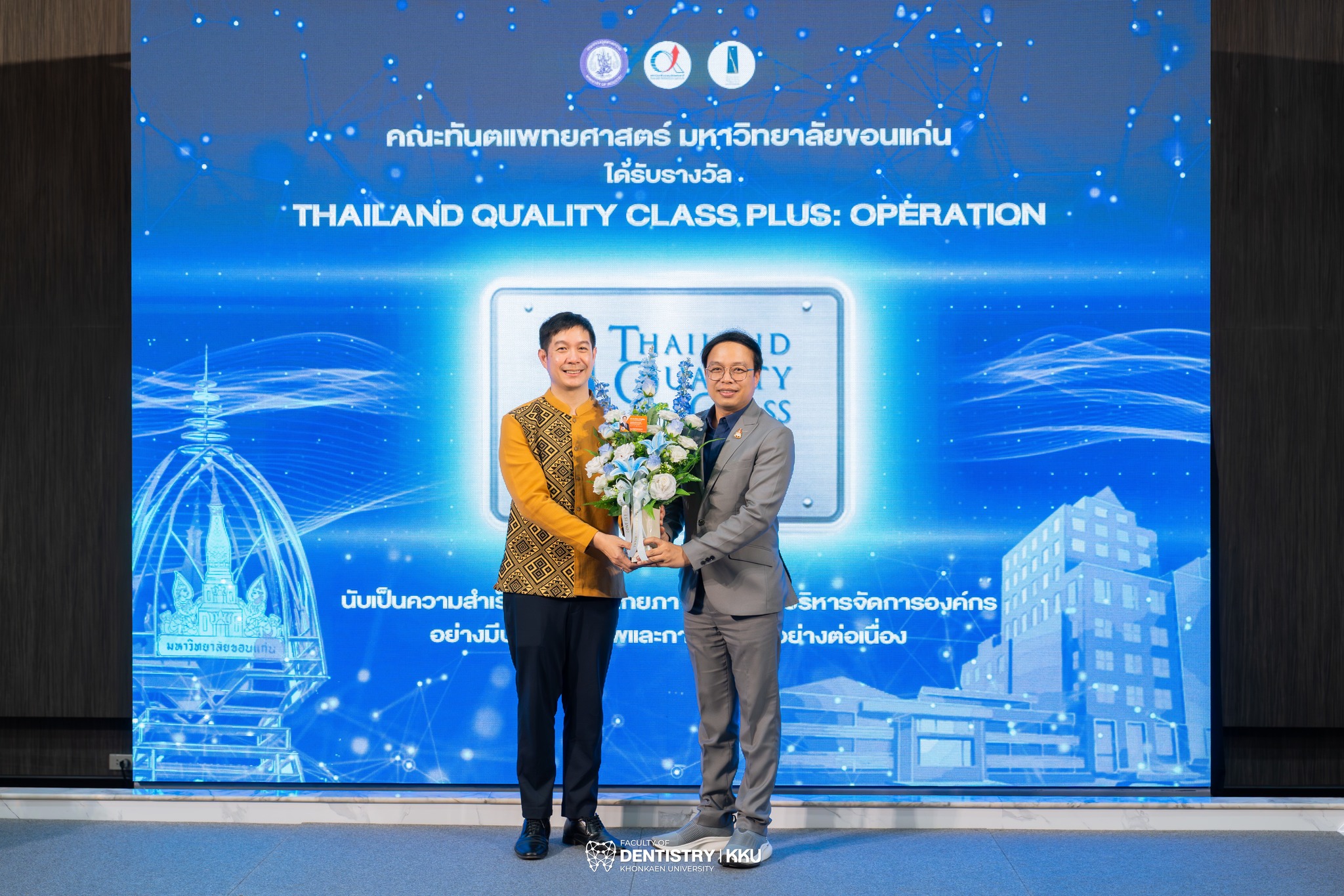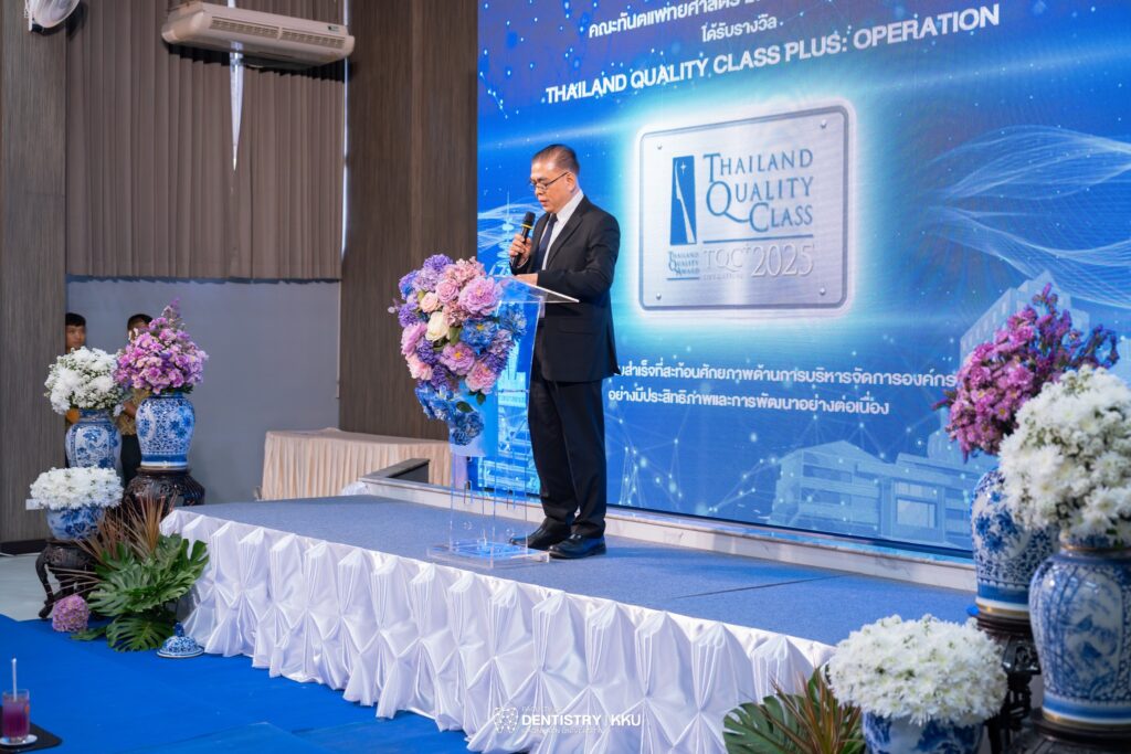 รศ.นพ.ชาญชัย พานทองวิริยะกุล อธิการบดีมหาวิทยาลัยขอนแก่น กล่าวว่า “ในนามของมหาวิทยาลัยขอนแก่น ขอแสดงความยินดีกับคณะทันตแพทยศาสตร์ มหาวิทยาลัยขอนแก่น ที่ได้รับ รางวัลคุณภาพแห่งชาติ ประจำปี 2568 : รางวัลการบริหารสู่ความเป็นเลิศที่มีความโดดเด่นด้านการปฏิบัติการ (TQC Plus Operation) รางวัลคุณภาพแห่งชาติถือเป็นเครื่องเชิดชูเกียรติองค์กรที่มีระบบบริหารจัดการอย่างสมดุลและครบถ้วนในทุกมิติ อยู่ในระดับมาตรฐานสากล ทั้งด้านการนำองค์กร การวางแผนกลยุทธ์ การดูแลลูกค้า บุคลากร และระบบการดำเนินงาน รวมถึงผลลัพธ์จากการดำเนินงานขององค์กร ความสำเร็จดังกล่าวสะท้อนถึงคุณภาพและความเข้มแข็งขององค์กร และยังเป็น องค์กรต้นแบบ (Role Model) ที่สามารถถ่ายทอดแนวทางและเครื่องมือในการพัฒนาให้แก่ผู้มีส่วนได้ส่วนเสีย ทั้งลูกค้า บุคลากร ชุมชน และสังคม ว่าจะได้รับการดูแลอย่างมีคุณภาพจากองค์กร”