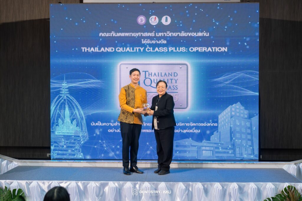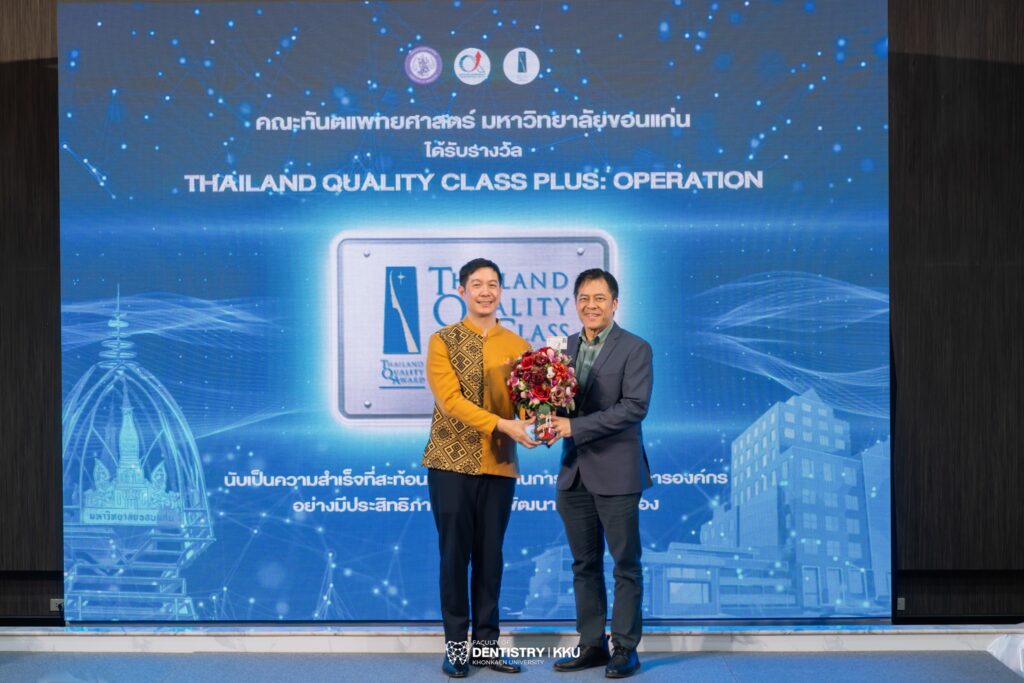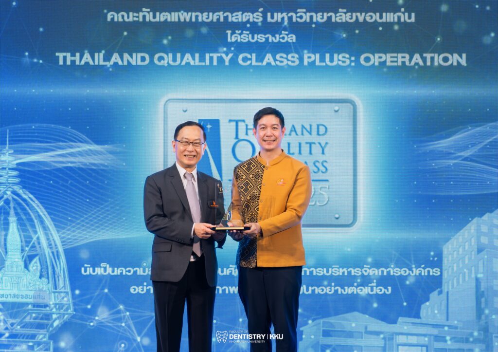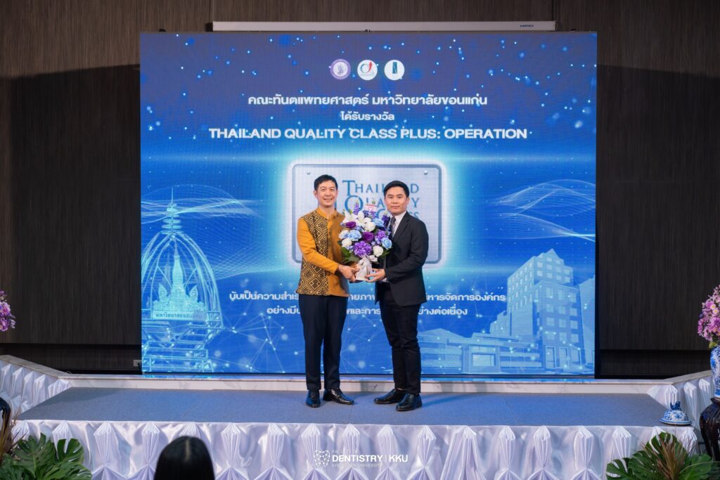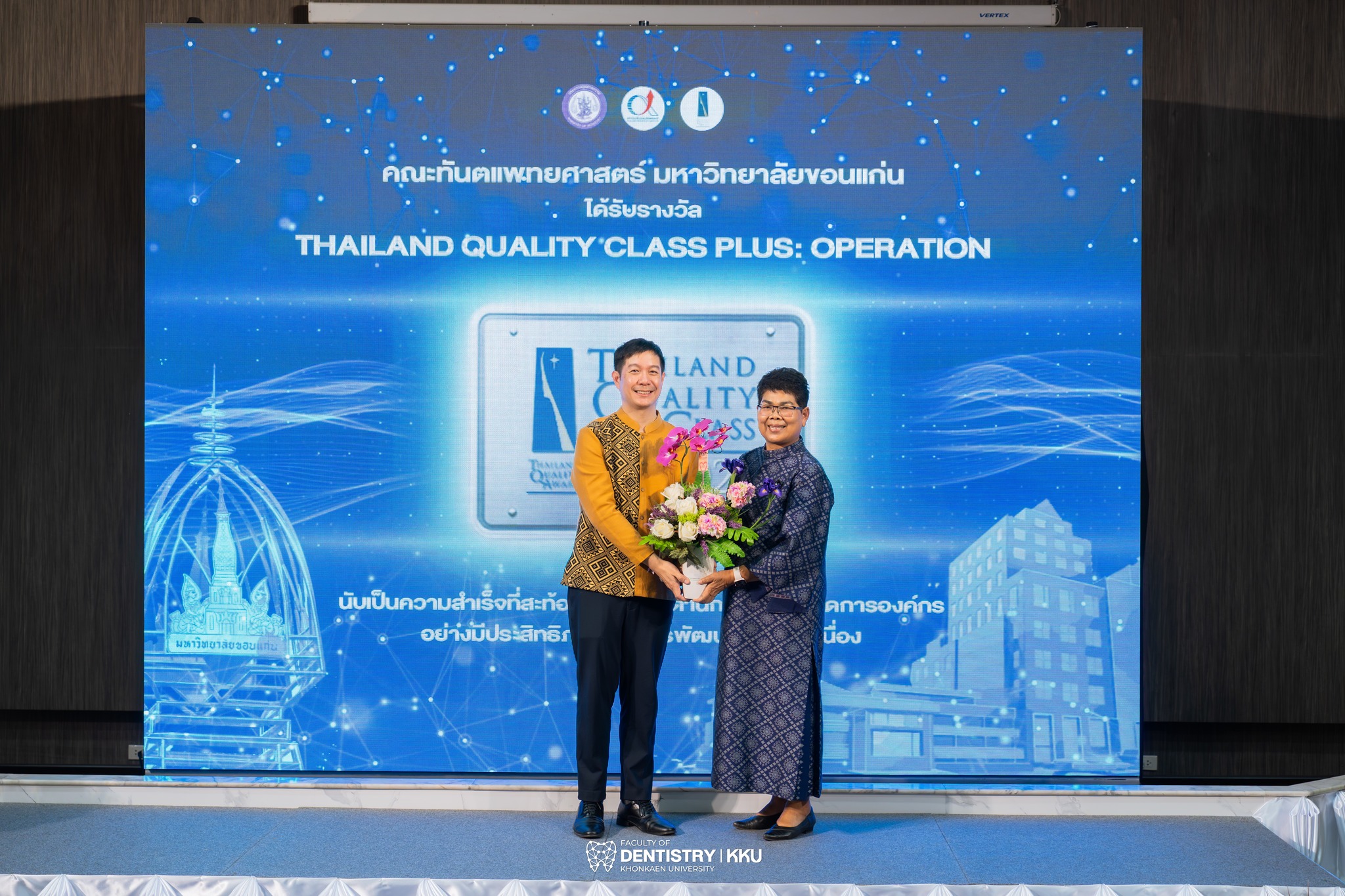 รศ.นพ.ชาญชัย พานทองวิริยะกุล อธิการบดีมหาวิทยาลัยขอนแก่น กล่าวว่า “ในนามของมหาวิทยาลัยขอนแก่น ขอแสดงความยินดีกับคณะทันตแพทยศาสตร์ มหาวิทยาลัยขอนแก่น ที่ได้รับ รางวัลคุณภาพแห่งชาติ ประจำปี 2568 : รางวัลการบริหารสู่ความเป็นเลิศที่มีความโดดเด่นด้านการปฏิบัติการ (TQC Plus Operation) รางวัลคุณภาพแห่งชาติถือเป็นเครื่องเชิดชูเกียรติองค์กรที่มีระบบบริหารจัดการอย่างสมดุลและครบถ้วนในทุกมิติ อยู่ในระดับมาตรฐานสากล ทั้งด้านการนำองค์กร การวางแผนกลยุทธ์ การดูแลลูกค้า บุคลากร และระบบการดำเนินงาน รวมถึงผลลัพธ์จากการดำเนินงานขององค์กร ความสำเร็จดังกล่าวสะท้อนถึงคุณภาพและความเข้มแข็งขององค์กร และยังเป็น องค์กรต้นแบบ (Role Model) ที่สามารถถ่ายทอดแนวทางและเครื่องมือในการพัฒนาให้แก่ผู้มีส่วนได้ส่วนเสีย ทั้งลูกค้า บุคลากร ชุมชน และสังคม ว่าจะได้รับการดูแลอย่างมีคุณภาพจากองค์กร”