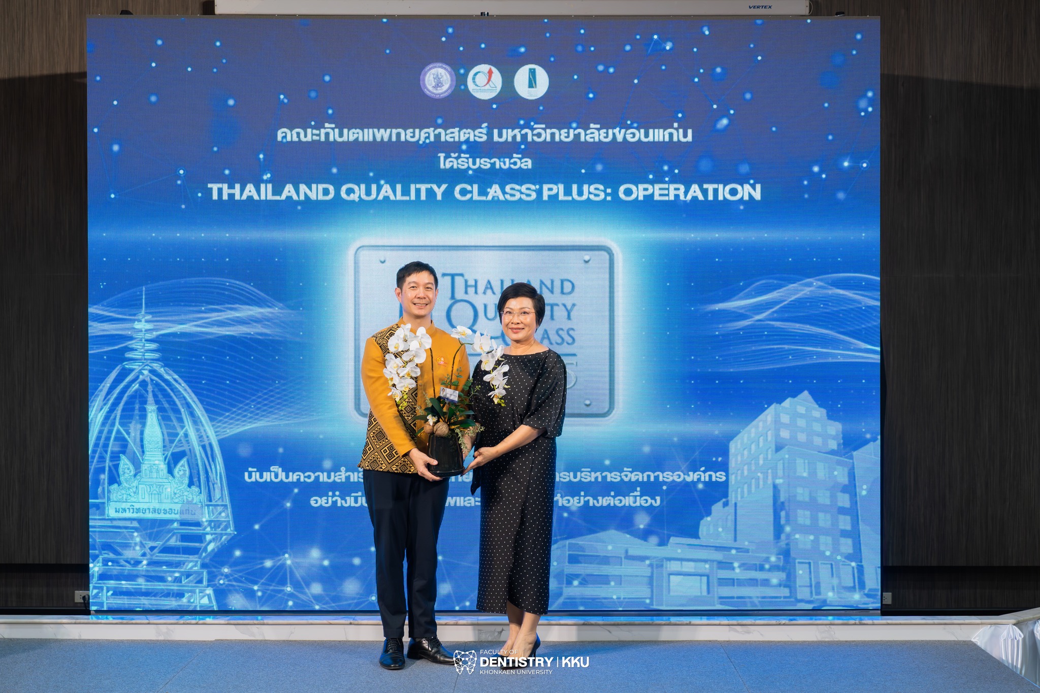 อธิการบดีมหาวิทยาลัยขอนแก่นยังกล่าวเพิ่มเติมว่า “การได้รับรางวัลอันทรงเกียรตินี้เป็นเครื่องยืนยันว่าคณะทันตแพทยศาสตร์มีแนวทางการบริหารจัดการที่มีประสิทธิภาพ สามารถเสริมสร้างขีดความสามารถในการแข่งขันขององค์กร มีภูมิคุ้มกันต่อการเปลี่ยนแปลง และพัฒนาทั้งด้านผลิตภาพและคุณภาพ (Productivity and Quality) พร้อมทั้งเป็นแบบอย่างที่ดีให้องค์กรอื่นสามารถนำไปประยุกต์ใช้เพื่อพัฒนาสู่ความเป็นเลิศได้ ในโอกาสนี้ มหาวิทยาลัยขอนแก่นขอชื่นชมและขอบคุณคณะผู้บริหาร คณาจารย์ และบุคลากรของคณะทันตแพทยศาสตร์ ที่ร่วมกันทุ่มเทและดำเนินงานตามนโยบายและภารกิจของมหาวิทยาลัยอย่างเข้มแข็ง รวมทั้งขอขอบคุณที่ปรึกษาและผู้มีส่วนเกี่ยวข้องทุกภาคส่วนที่ร่วมสนับสนุนและผลักดันการพัฒนาคุณภาพองค์กร จนเกิดความสำเร็จที่เป็นรูปธรรมและสร้างความภาคภูมิใจให้กับมหาวิทยาลัยขอนแก่นในครั้งนี้”