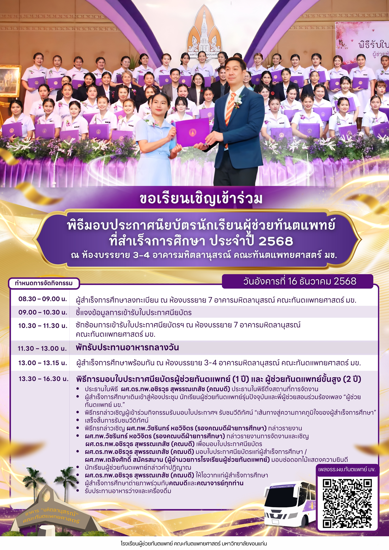 พิธีมอบใบประกาศนียบัตรหลักสูตรผู้ช่วยทันตแพทย์ และผู้ช่วยทันตแพทย์ขั้นสูง ประจำปี 2568