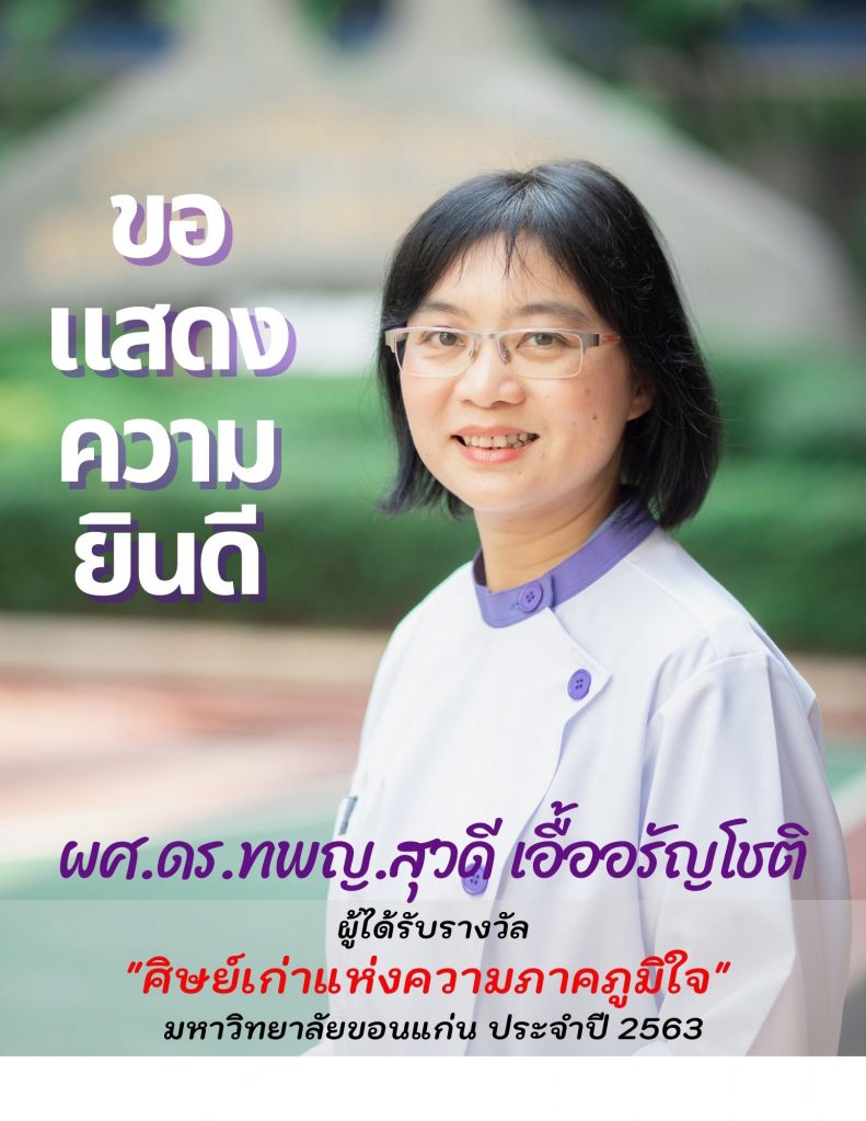 รางวัลศิษย์เก่า ผศ.ดร.ทพญ.สุวดี เอื้ออรัญโชติ อาจารย์/ศิษย์เก่าทันตแพทย์ มข. ได้รับรางวัล “ศิษย์เก่าแห่งความภาคภูมิใจ” 22 ก.พ. 25646 ต.ค. 2021 yingpo22 ก.พ. 2564
