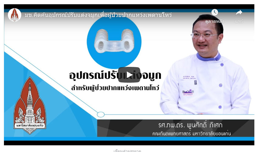 เราในสื่อทีวี มข. คิดค้น อุปกรณ์ปรับแต่งจมูกเพื่อผู้ป่วยปากแหว่งเพดานโหว่ สุดยอดนวัตกรรม ! คว้ารางวัลประกาศเกียรติคุณจากสภาการวิจัยแห่งชาติ 2563 ตัวแทนประเทศไทยมุ่งประชันนวัตกรรมระดับโลกปีนี้ 21 พ.ค. 256316 มิ.ย. 2020 yingpo21 พ.ค. 2563